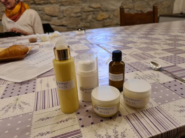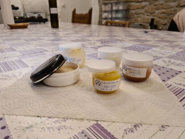 - Am Ende des Kurses nehmen Sie 5 herrliche, selbstgerührte Produkte nach Wahl mit nach Hause.