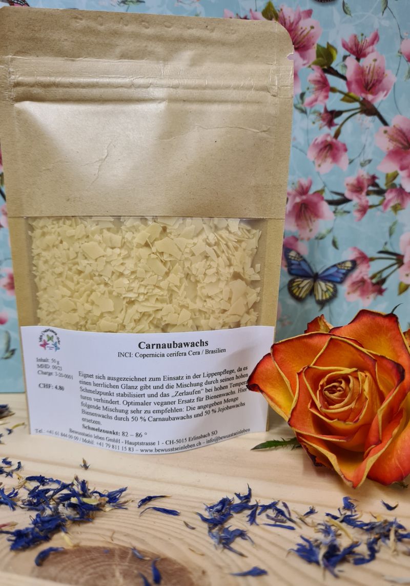 Carnaubawachs ist ein rein pflanzliches Wachs und ist das härteste natürliche Wachs. In der Natur hat das Wachs der brasilianischen Carnaubapalme die Aufgabe, die Blätter des Baumes vor dem Austrocknen zu schützen. Die Gewinnung erfolgt durch Trocknen, Bürsten, Klopfen und Schaben Anschliessend wird es geschmolzen und von Verunreinigung befreit. Carnaubawachs ist in der Lebensmittelverpackung mit E903 gekennzeichnet und ein für Menschen unverdauliches Wachs.